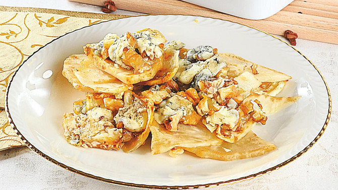Zapečený celer s ořechy a nivou