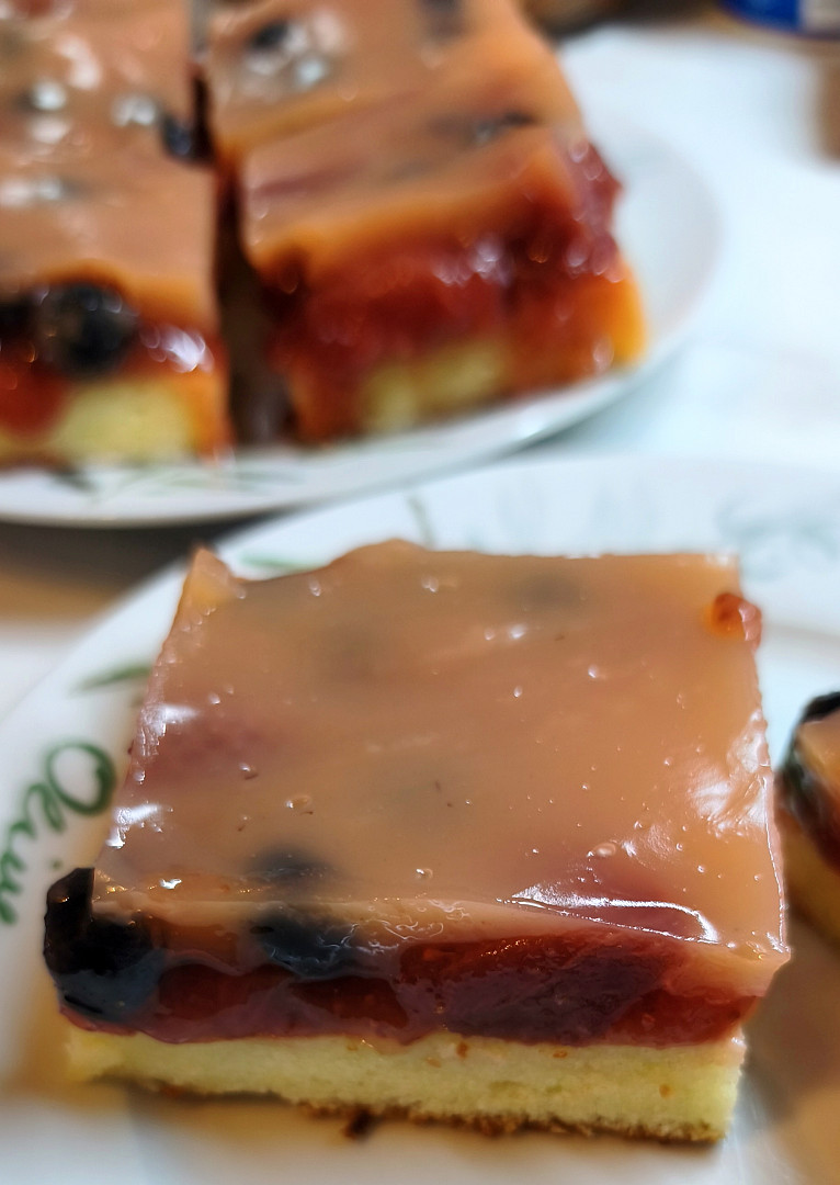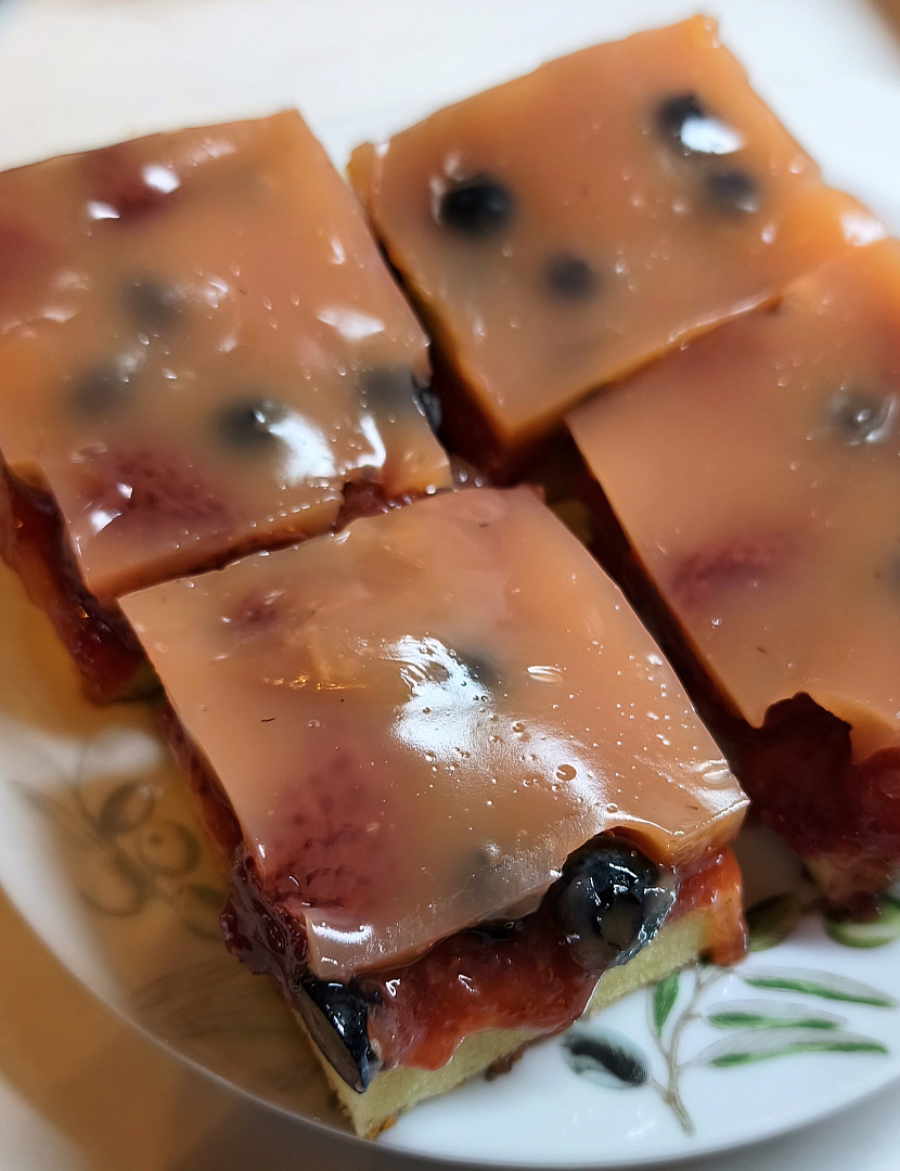 Ovocné řezy s pudinkem a jahodami