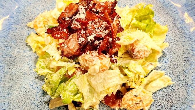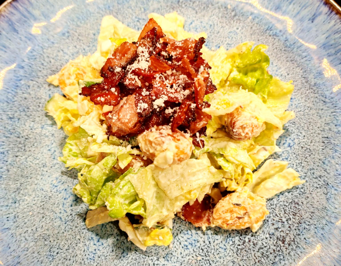 Tento rychlý pokrm připravíte bez velké námahy. Křupavé gnocchi v salátu nahradí krutony. V míse se pak spojí s vejcem, slaninou, čerstvou zeleninou a jogurtovým dresinkem v lahodný salát, který stačí nakonec posypat sýrem.