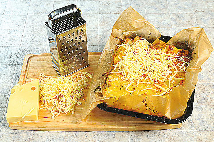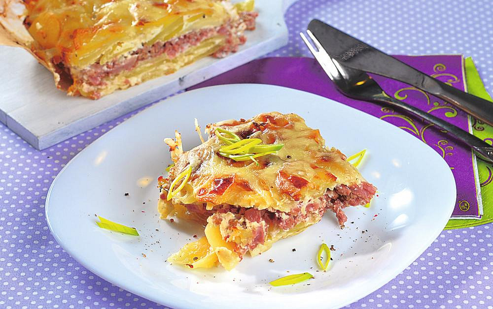 Zapečené švýcarské brambory s uzeným masem