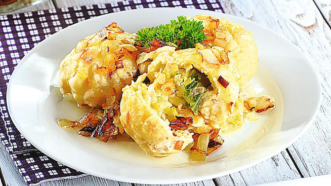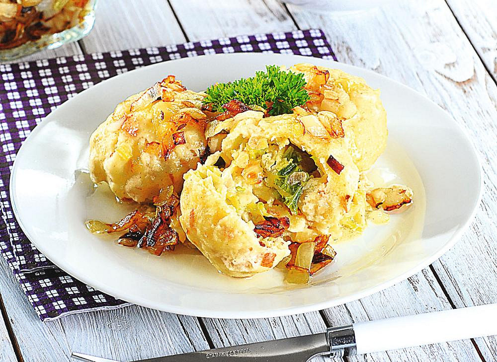 Plněné bramborové knedlíky s kapustou