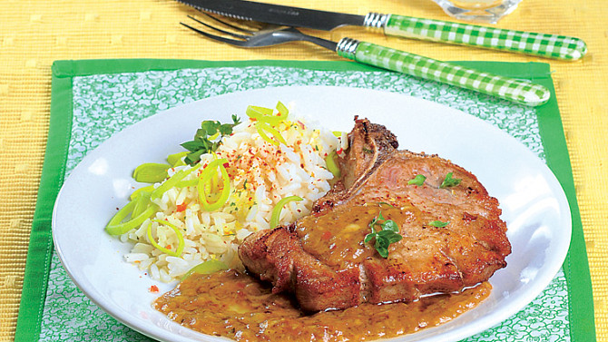 Krok 5: Kotlety na talíři přelijeme sýrovou šťávou a ozdobíme drceným pepřem a nudličkami pórku. Podáváme s rýží nebo jinou přílohou dle chuti.
