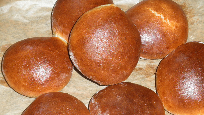 Krok 5: Po vykynutí housky mírně zmáčkneme dlaní a potřeme rozpuštěným, mírně vychladlým máslem. Pokud chceme, můžeme housky posypat sezamem.