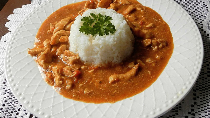 Jednoduchý recept na chutné hlavní jídlo pro každou příležitost. Šťavnaté kousky vepřového masa osmažené s cibulí a ochucené výraznou hořčicí i paprikou podusíme doměkka a podáváme s voňavou jasmínovou rýží.