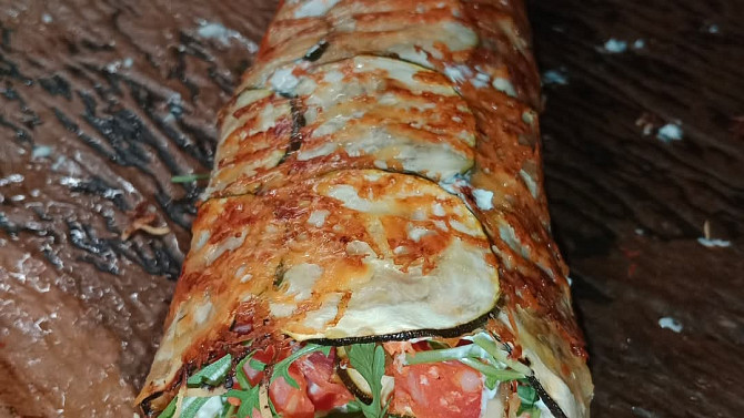 Tento recept představuje moderní trend, kdy se jako základ rolády používají plátky cukety upečené se sýrem. Na hotový plát se rozetře brynza ochucená česnekem, přidají se kousky avokáda, choriza a rukola. Nakonec se stočí do lákavé rolády.
