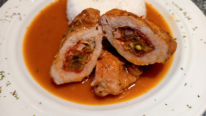 Plněné vepřové plátky pórkovou směsí