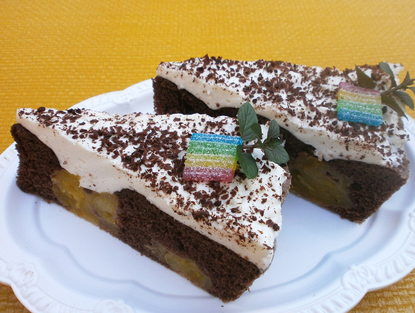 Koláč s broskvovým pudinkem
