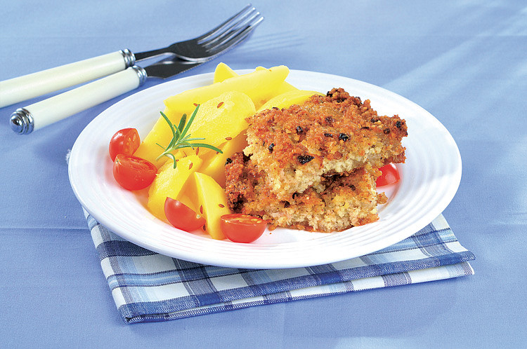 Filé z tresky, hráškové pyré a opečené brambory