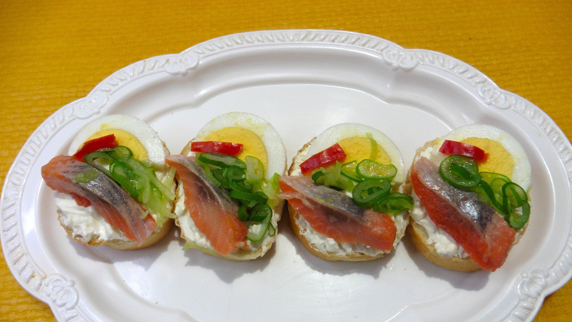 Jednohubky s matjesem a vajíčkem