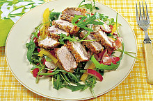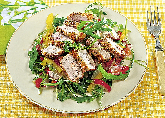Krůtí medailonky v sezamovém kabátku se zeleninovým salátem
