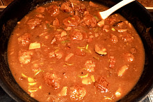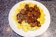 Masové kuličky na houbách a pórku s domácími těstovinami