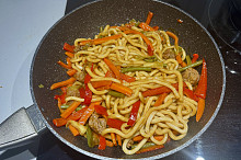 Udon nudle se zeleninou a teriyaki omáčkou
