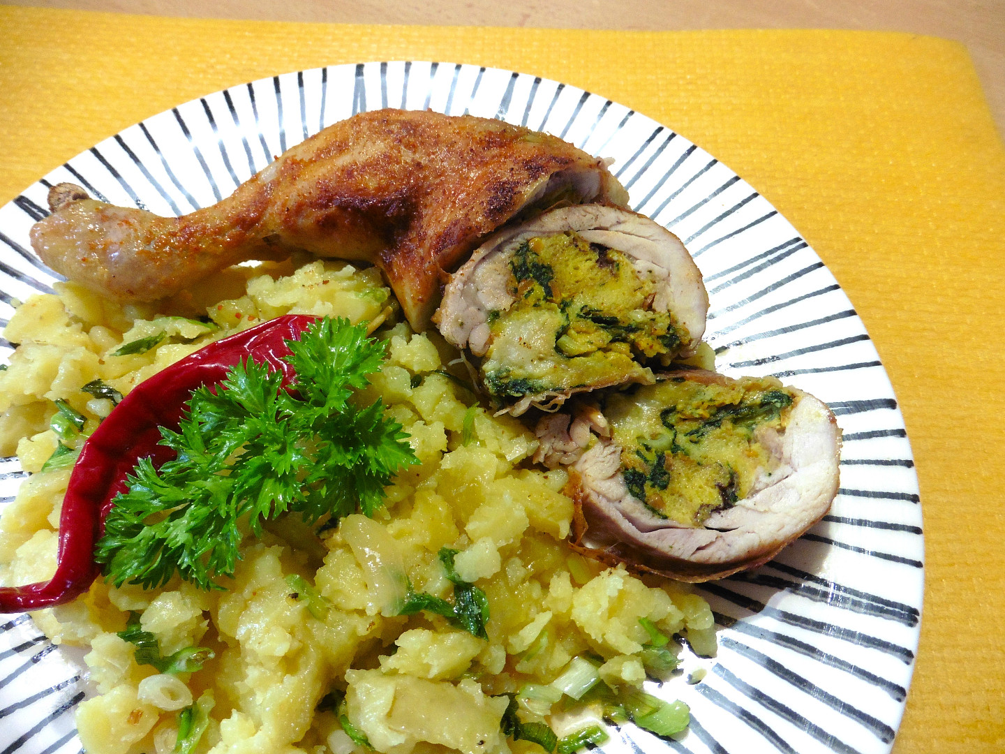 Kuřecí stehna plněná nádivkou s medvědím česnekem