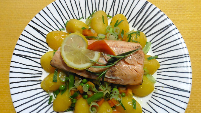Jemné růžové maso z pstruha lososovitého stačí doplnit jen voňavým rozmarýnem, solí, pepřem a citronovou šťávou. Jednoduchá úprava je zpravidla nejlepší. K filetu ryby pak můžeme podávat směs barevné zeleniny a vařené brambory.