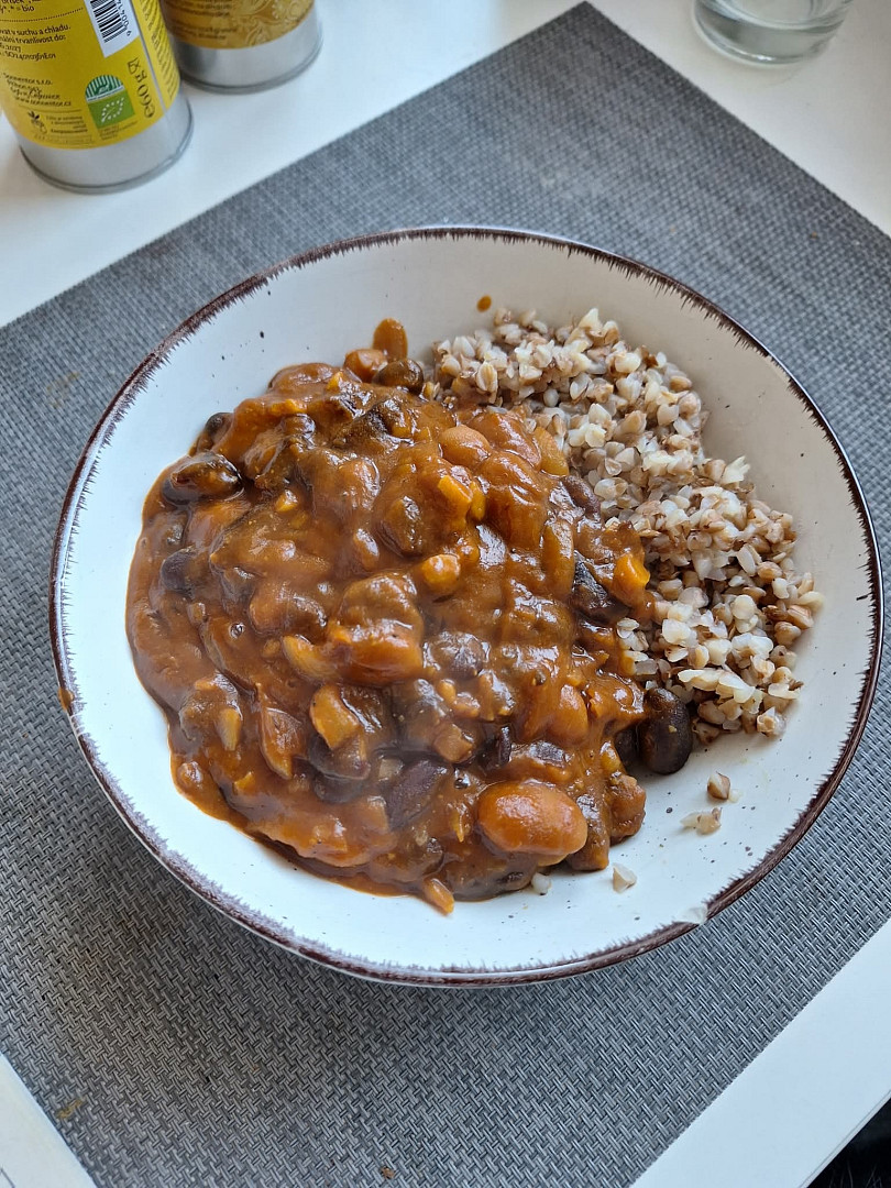 Dvoubarevné fazole na kari s pohankou