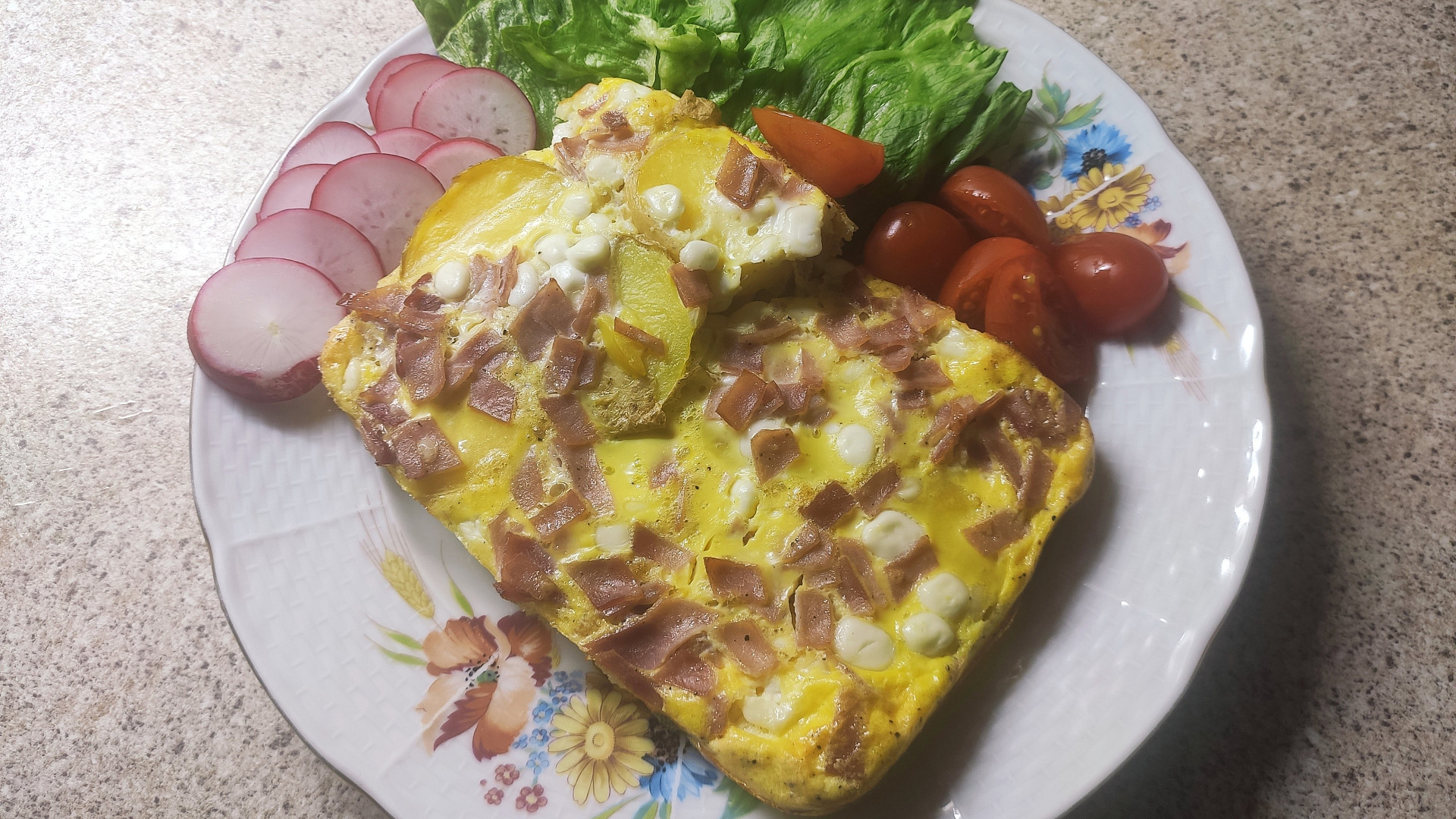 Brambory zapečené s cottage a šunkou