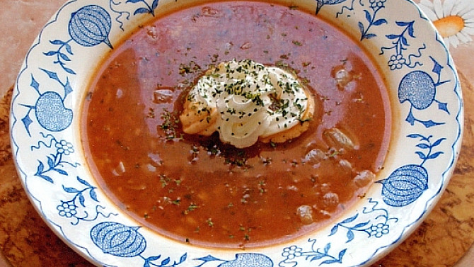 Polévka z tomatového pyré s vločkami