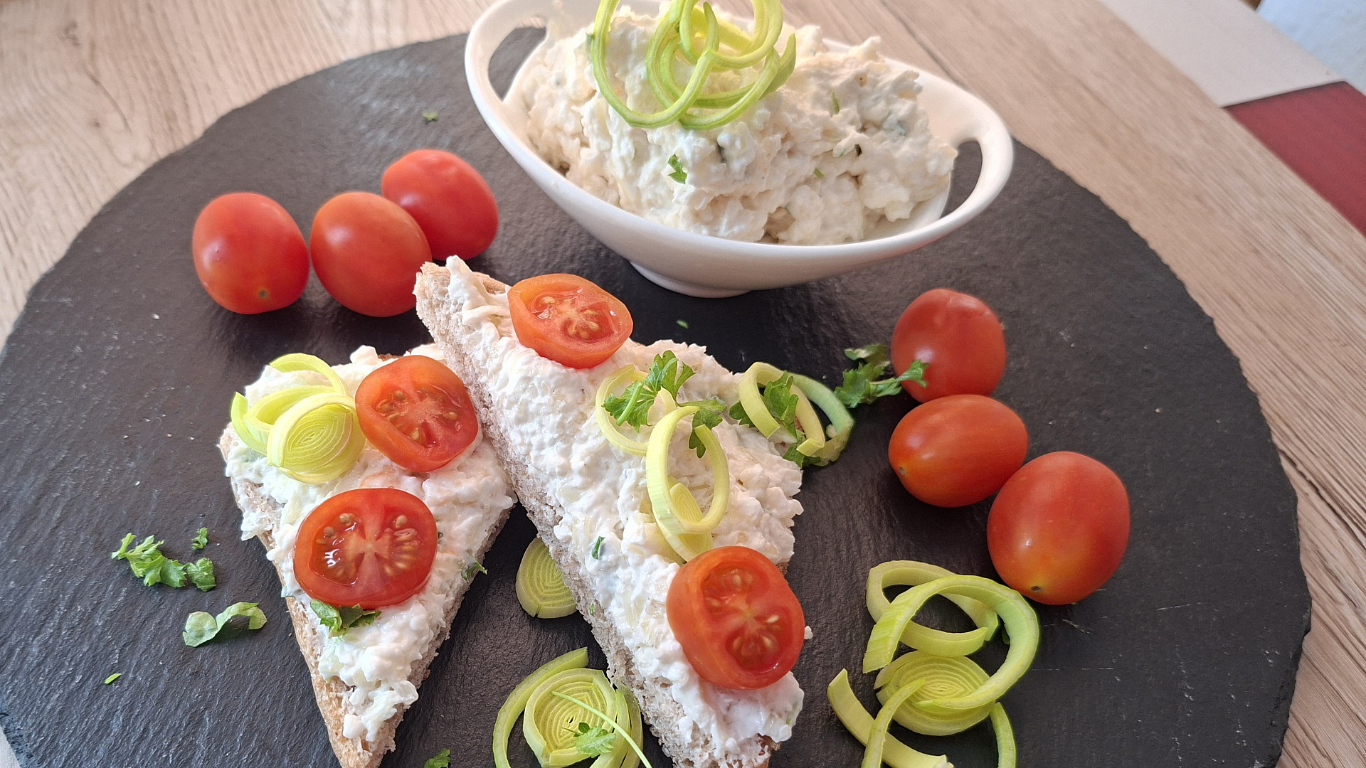 Jemná tvarohová pomazánka spojuje výrazné tvarůžky s lehce cibulovou chutí pórku. Česnek jí dodá říz a nasekaná petrželka svěží tečku. S čerstvým pečivem tvoří jednoduchou, ale velmi chutnou kombinaci.