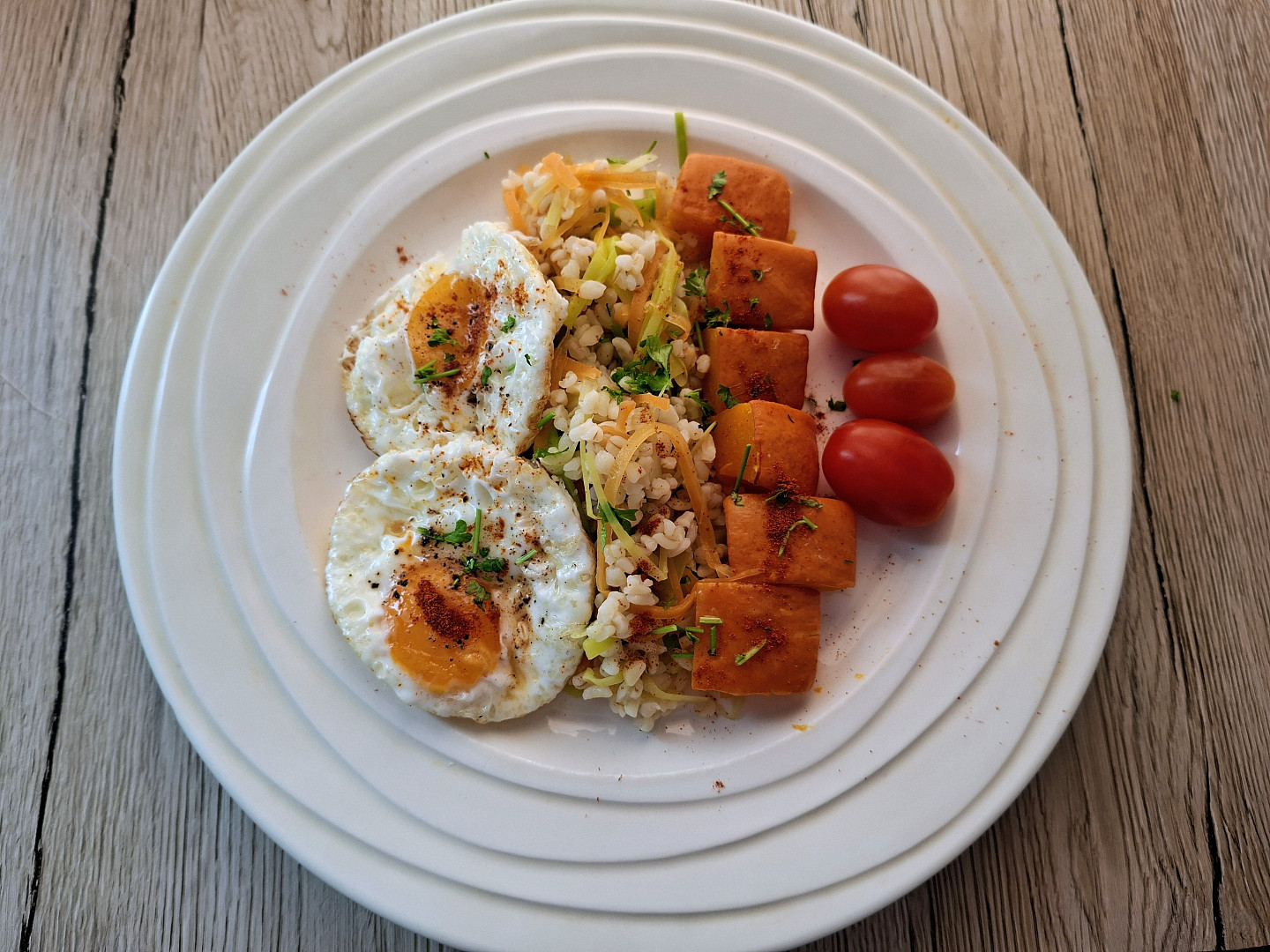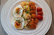 Bulgur se zeleninou s pečenou dýní a volskými oky