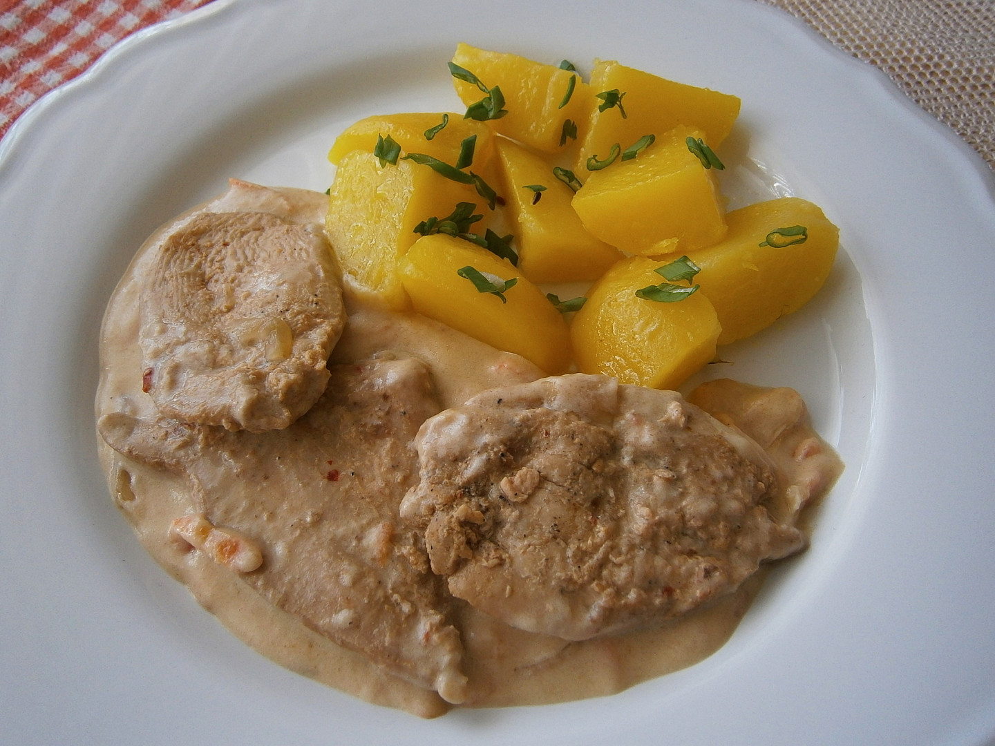 Kuřecí plátky na cibuli se smetanovou omáčkou