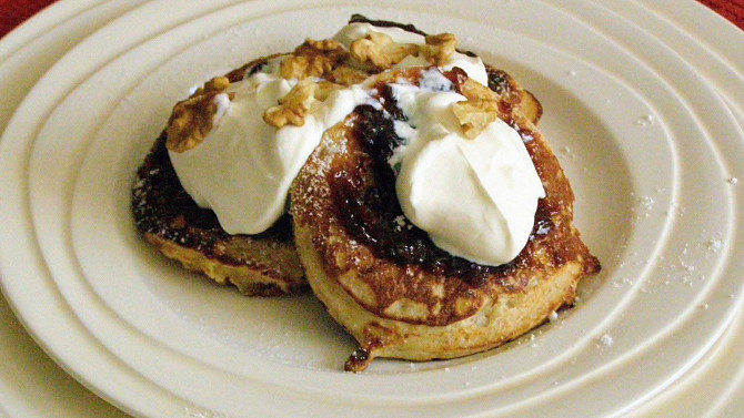 Ovesné lívanečky s povidly a kysanou smetanou
