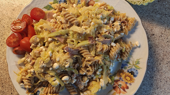 Lehké těstoviny s raným zelím, šunkou a cottage sýrem jsou rychlým a vyváženým jídlem z jedné pánve. Zelí krátce orestujeme, přidáme vejce a uvařené těstoviny a na závěr vmícháme cottage pro jemnost a krémovou chuť.
