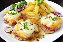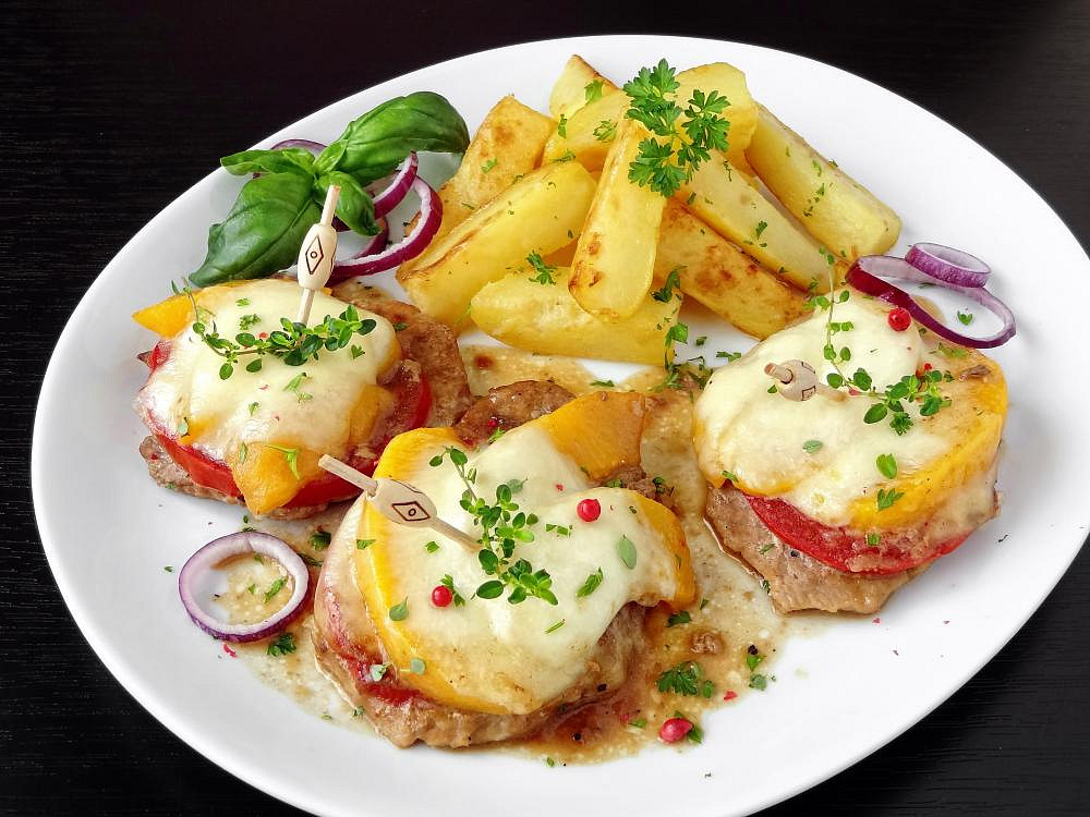 Domů - Recepty - Zapečené vepřové medailonky s broskví