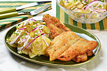 Smažený pangasius se salátem z bramborových plátků