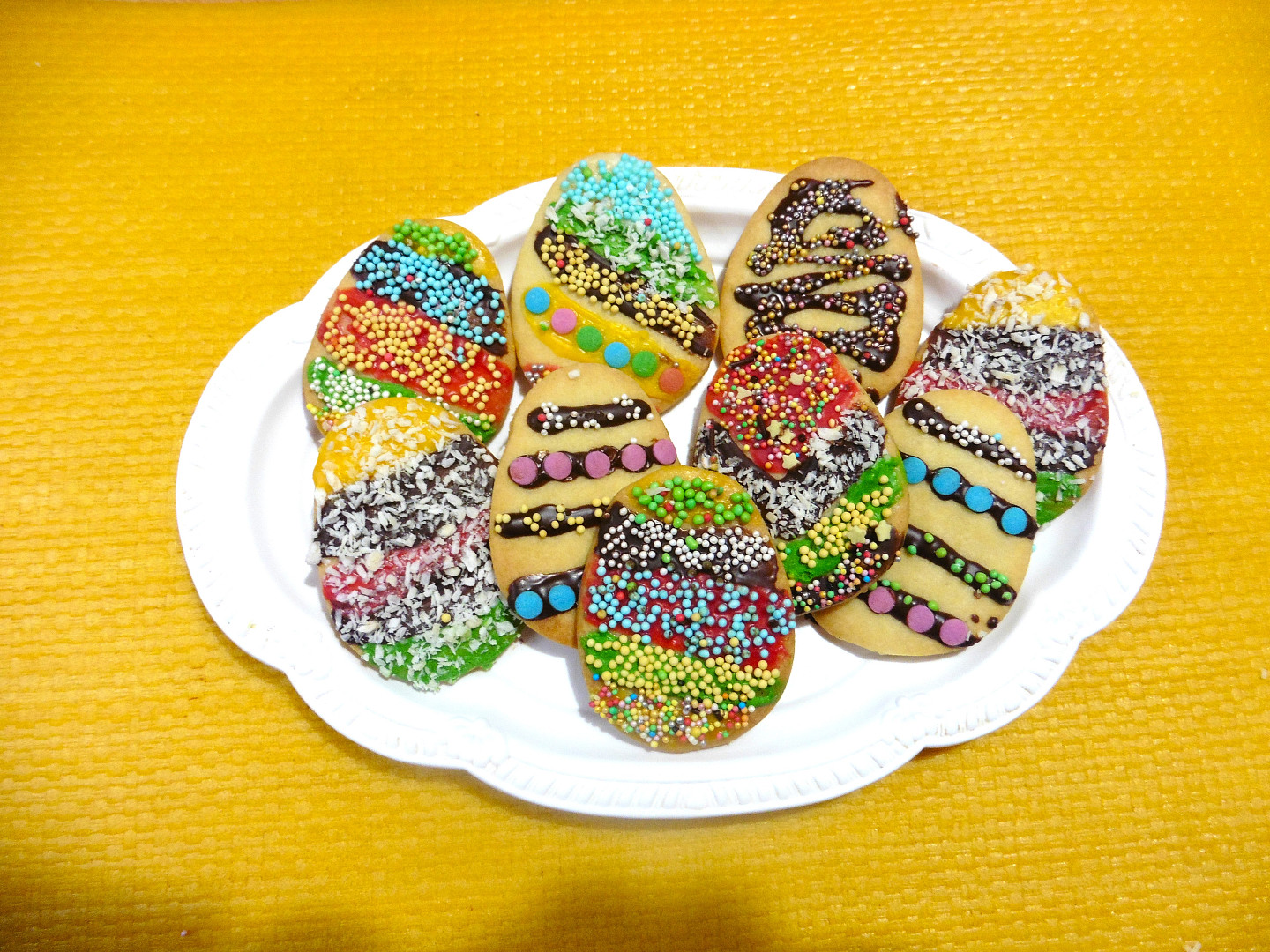 Linecká vajíčka zdobená čokoládou a cukrovým zdobením