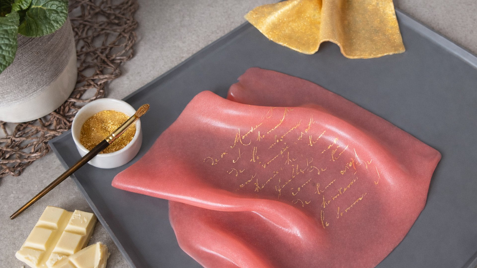 Marcipánovým a fondánovým dortům pomalu odzvonilo. Teď frčí jedlá látka z čokolády a želatiny. Elegantní dekorace na dorty, která vypadá jako skutečný satén. Ideální na přehozy, řasení nebo luxusní detail místo klasického fondánu.