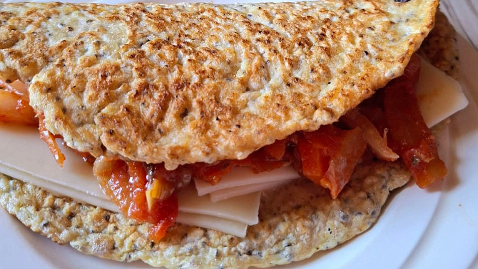 Připravte si zdravý a přitom chuťově výrazný pokrm. Jednoduché placky z namáčených ovesných vloček a chia semínek doplní pikantní zeleninová směs, kterou jednoduše orestujete a upečete v troubě. Celé jídlo doladí plátky sýra a hořčice.