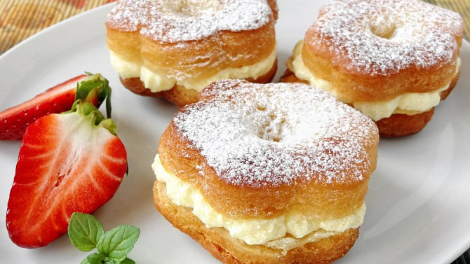 Nadýchané vdolky z kynutého těsta s nádechem rumu a citronové kůry jsou usmažené dozlatova. Doplňuje je jemný vanilkový krém z másla a mléka. Sladké pohoštění, které se skvěle hodí k rodinným setkáním i malým oslavám.