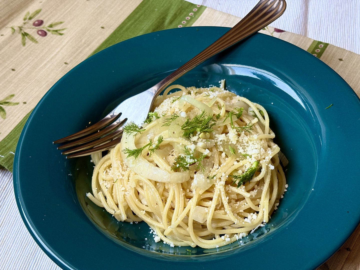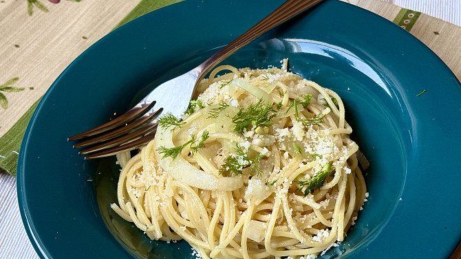 Špagety s čerstvým fenyklem, česnekem a parmezánem představují jednoduchou a lehkou kombinaci inspirovanou italskou kuchyní. Jemně anýzová chuť fenyklu po orestování zesládne a vytvoří skvělý a chutný pokrm.