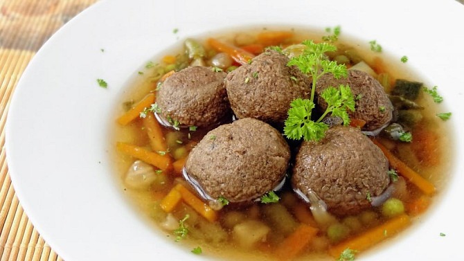 Krok 7: Z odleželé směsi navlhčenýma rukama tvarujeme malé knedlíčky (kuličky), které skládáme na tác a odložíme do chladničky, než se dovaří vývar.