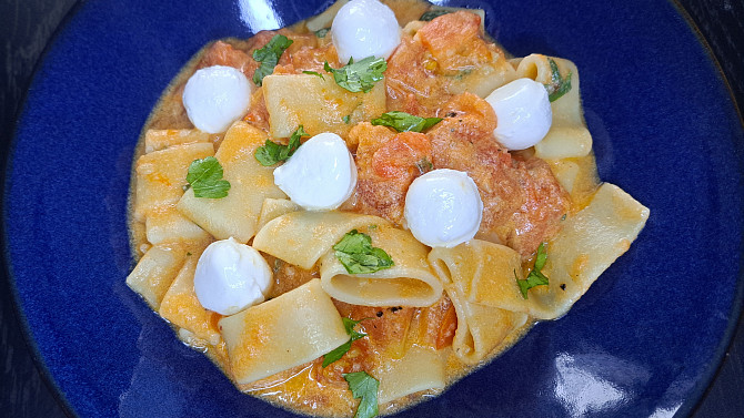 Těstoviny s rajčatovou omáčkou a mozzarellou