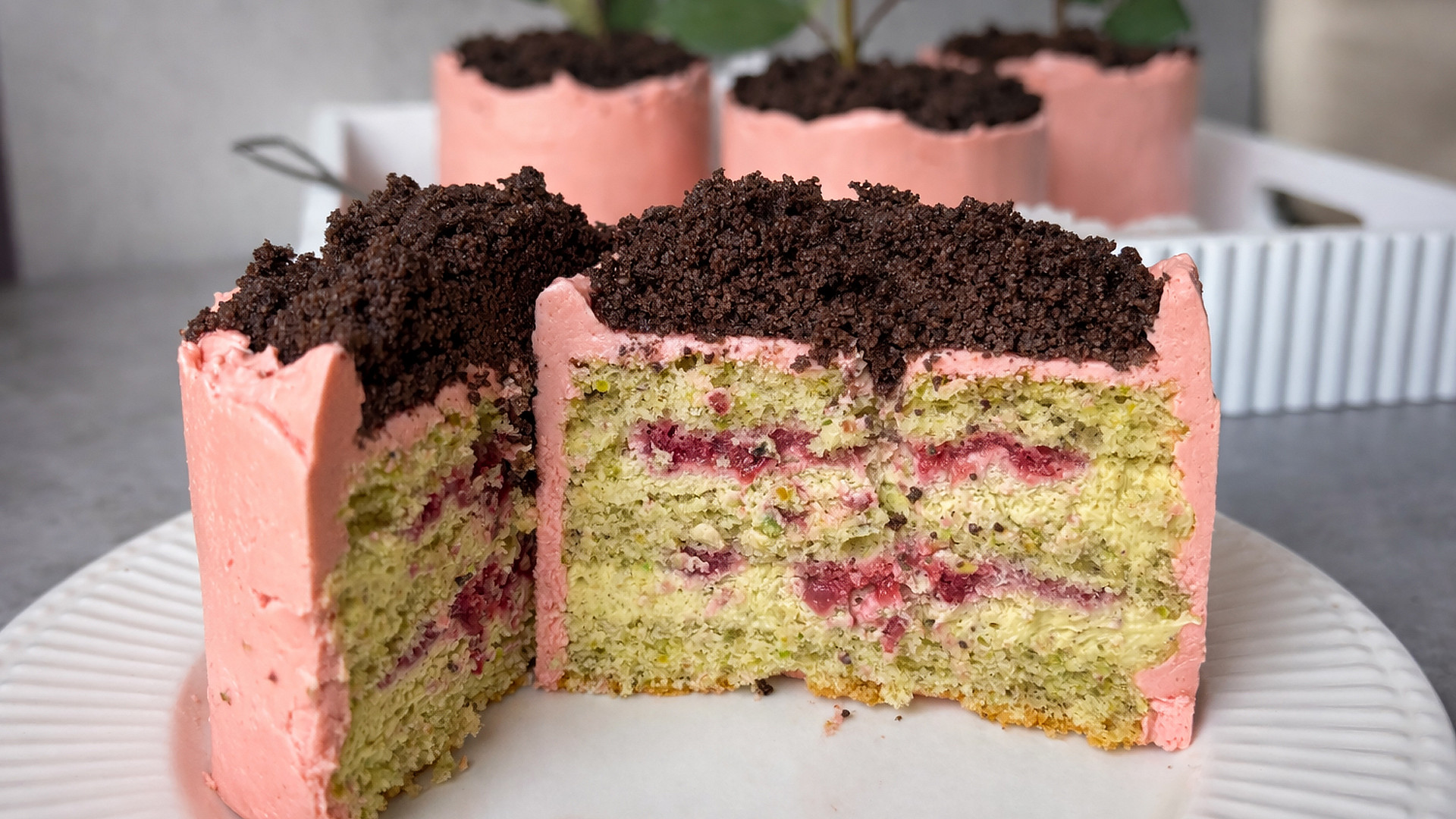 Pistáciové květináčky s malinami