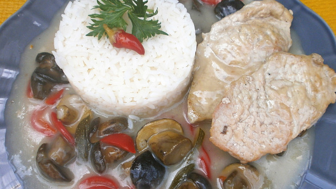 Vepřové plátky s cibulovo-houbovou omáčkou