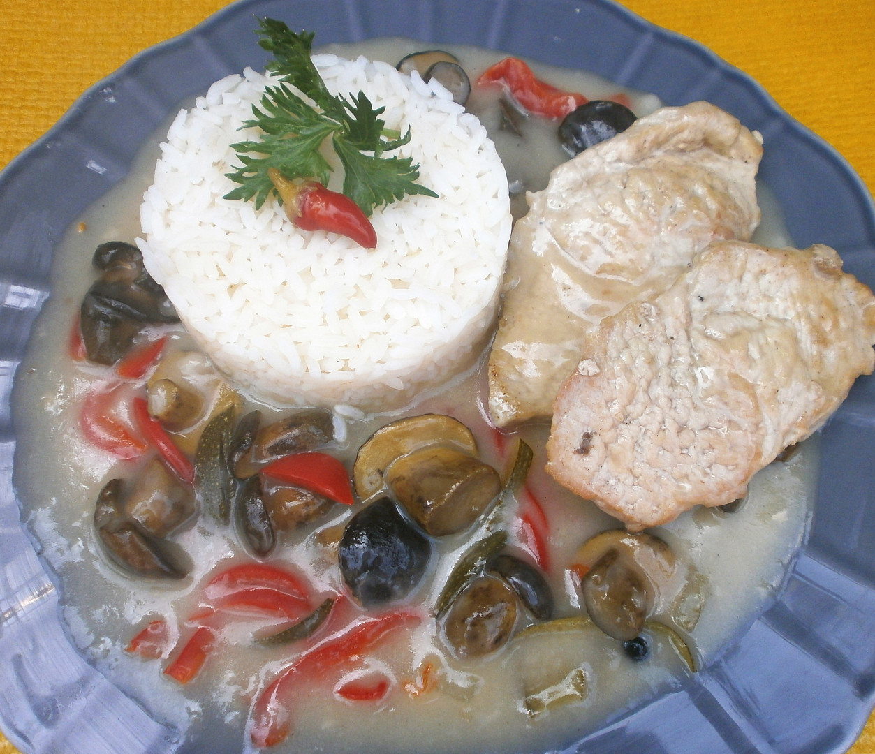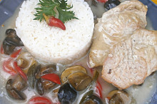 Vepřové plátky s cibulovo-houbovou omáčkou