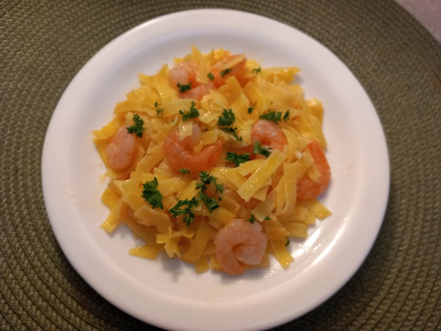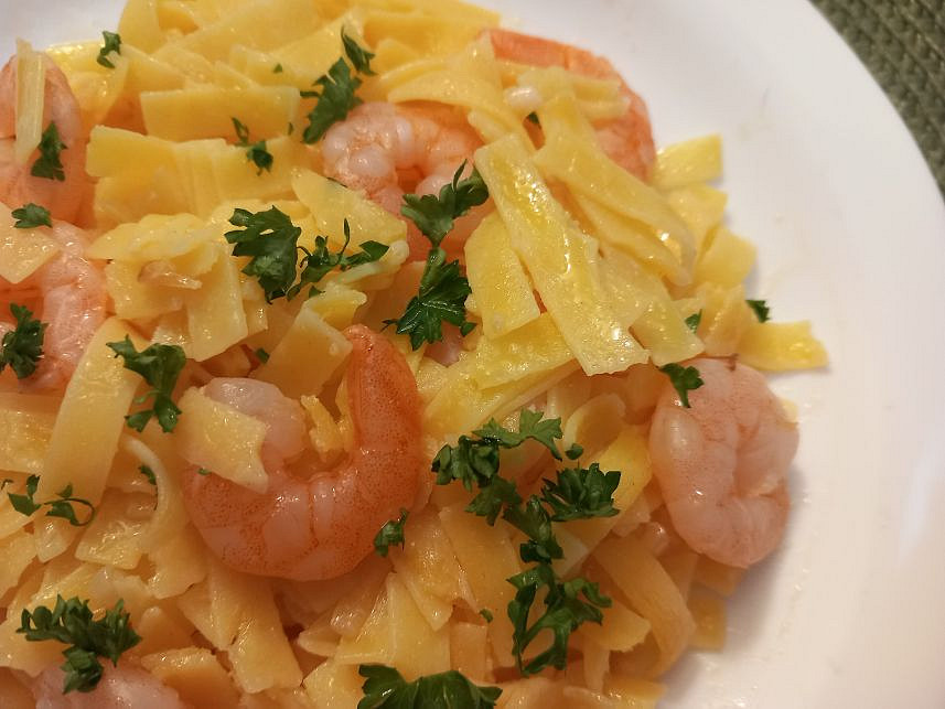 Česnekové krevety s nudlemi