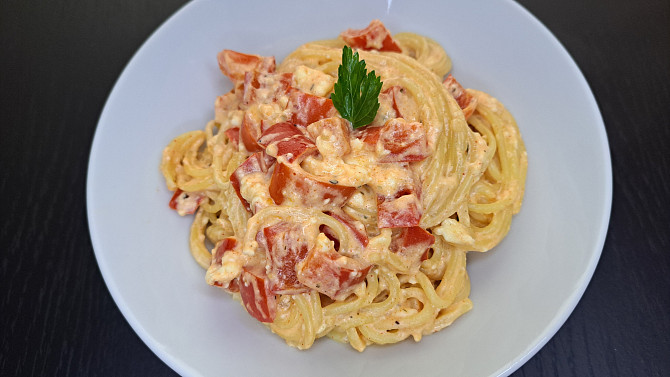 Špagety s balkánským sýrem z jednoho pekáčku