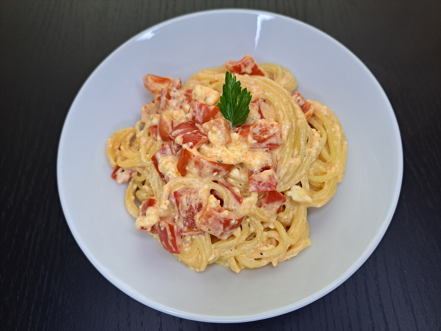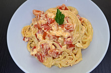 Špagety s balkánským sýrem z jednoho pekáčku