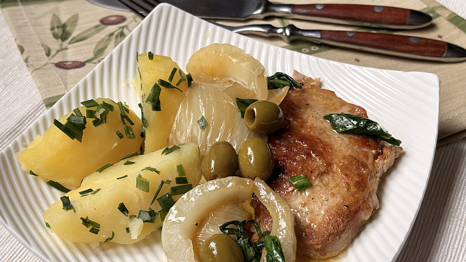 Vepřové kotlety s fenyklem, olivami a medvědím česnekem