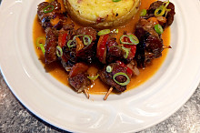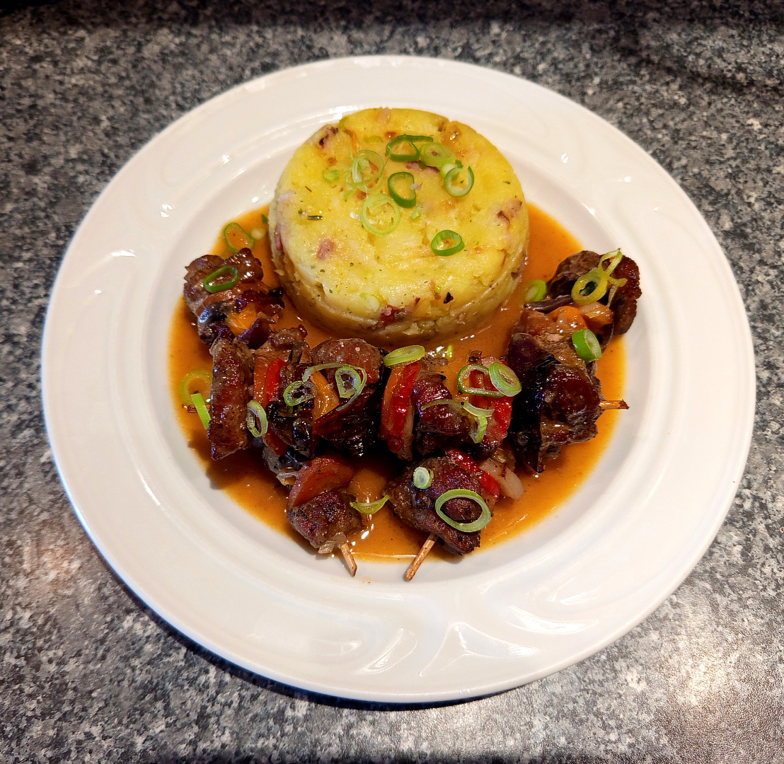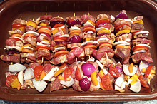 Domů - Recepty - Špízy z krkovice se šťávou z výpeku