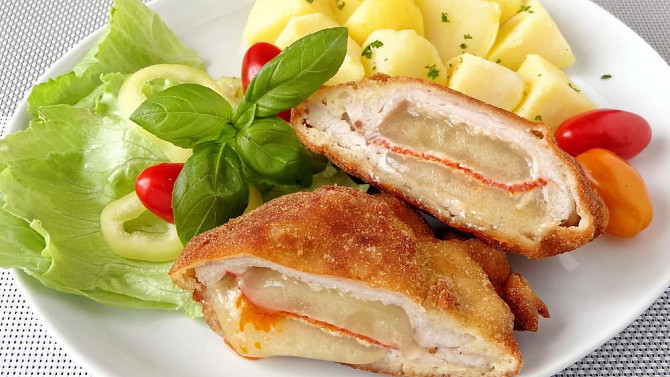 Vepřový řízek plněný tvarůžky a paprikášem