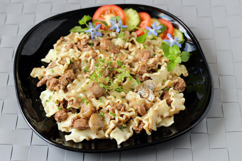 Vyzkoušejte nudle s kuřecími játry, slaninou a žampiony, které svou kombinací připomenou oblíbenou klasiku s názvem „Maminčino kuře“. Sytý pokrm z pánve, který hravě vytvoří rychlý a chutný oběd pro celou rodinu.