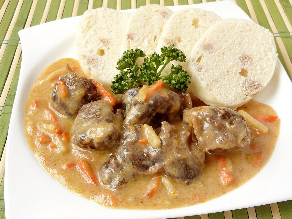 Krok 8: Hotový guláš rozdělíme na talíře a podáváme nejlépe s houskovým knedlíkem.