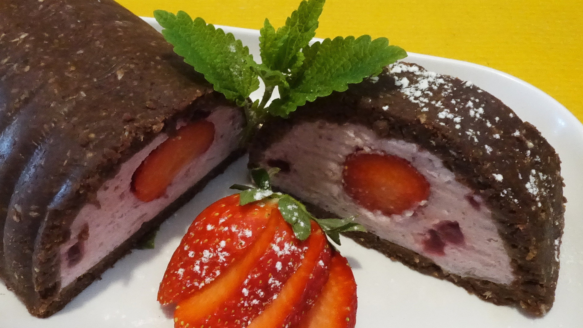 Moučník, který vypadá složitě, ale je překvapivě snadný. Klíčem k úspěchu je správně připravený želatinový ztužovač, aby náplň dokonale ztuhla. Korpus je z rozemletých kakaových sušenek, másla a mléka. Náplň z jahodového jogurtu je plná sladkých jahod.
