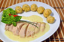 Slepice na víně s petrželkovými knedlíčky