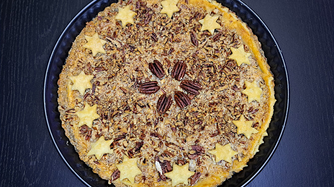 Voňavý ořechový koláč, ve kterém se snoubí jemně nasládlá chuť vlašských ořechů s máslovou plností pekanů, je dokonalým dezertem pro chvíle pohody. Křehké těsto a bohatá náplň vytvářejí kombinaci, která potěší u slavnostního stolu nebo při klidném odpoledni s kávou.