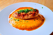 Restované kuřecí prso s dýňovým pyré